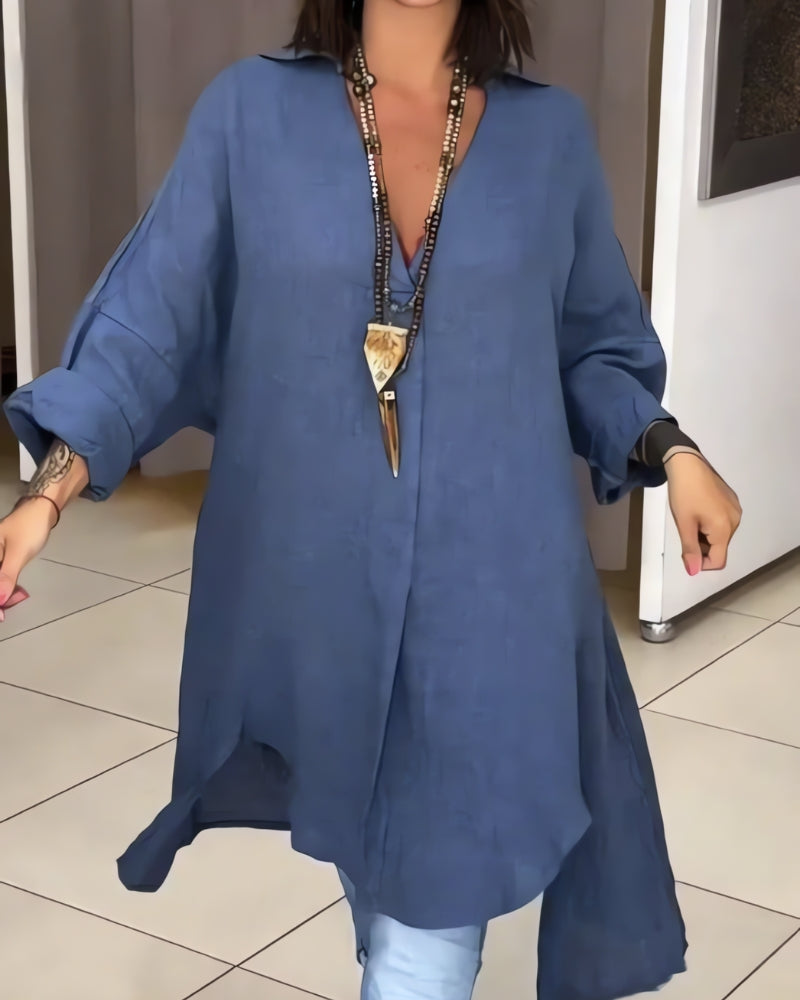 ELEINA - CASUAL SHIRT DRESS IN COTTON AND LINEN