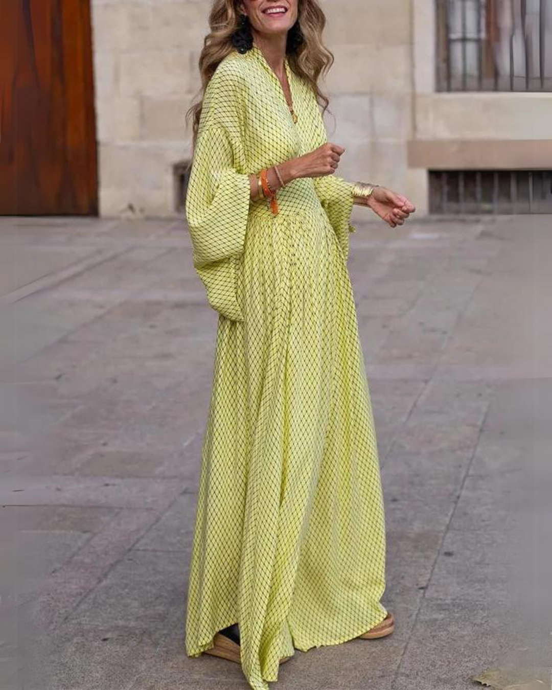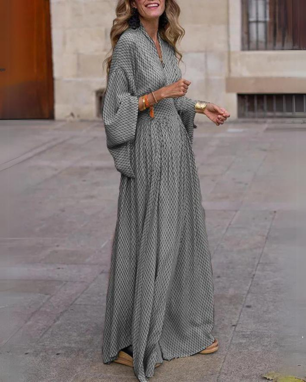 MILAS - V NECK LONG SLEEVES MAXI DRESS