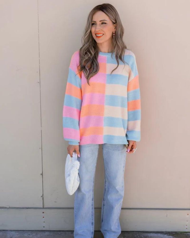 Embrace spring with a touch of vibrancy and cheerfulness. This sweater offers the perfect combination of style and comfort. The striking stripe design adds a playful touch to any look, while the lightweight construction keeps you comfortable all day, even on the warmest spring days.