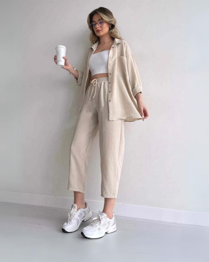 Enter the world of style and ease with the two piece set! This stunning two-piece set is designed to offer you the best combination of fashion and practicality.