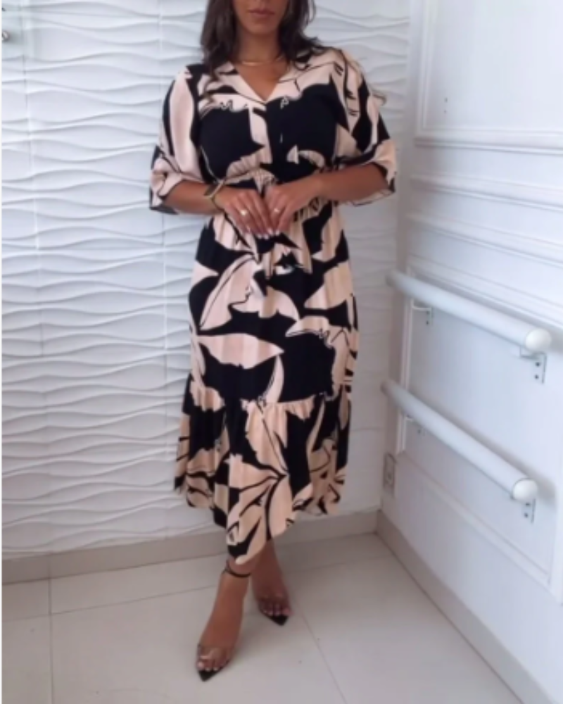 Bring effortless charm to your everyday look with this flowing, elegant piece. Its abstract print and soft draping create a flattering silhouette that moves beautifully with you. Designed for both comfort and style, it’s perfect for brunches, gatherings, or relaxed evenings out.