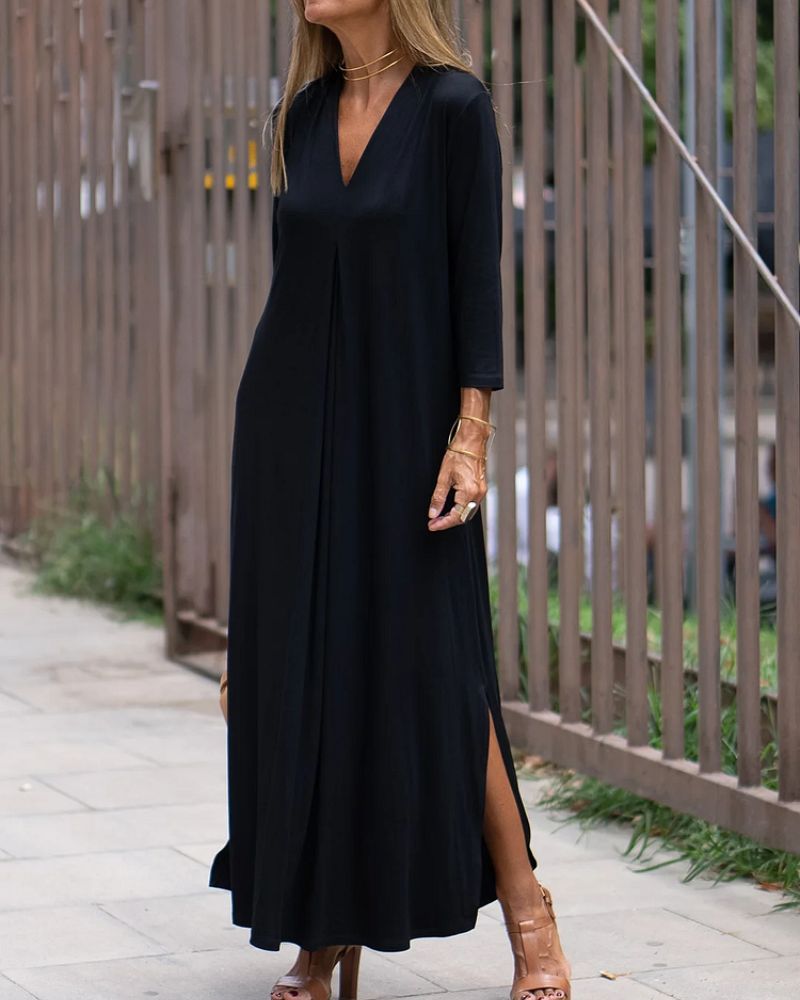 The AURATY Casual V-neck Comfortable Dress is designed for those who value both style and ease. This dress combines a relaxed fit with a flattering V-neckline, making it the perfect go-to for everyday wear.