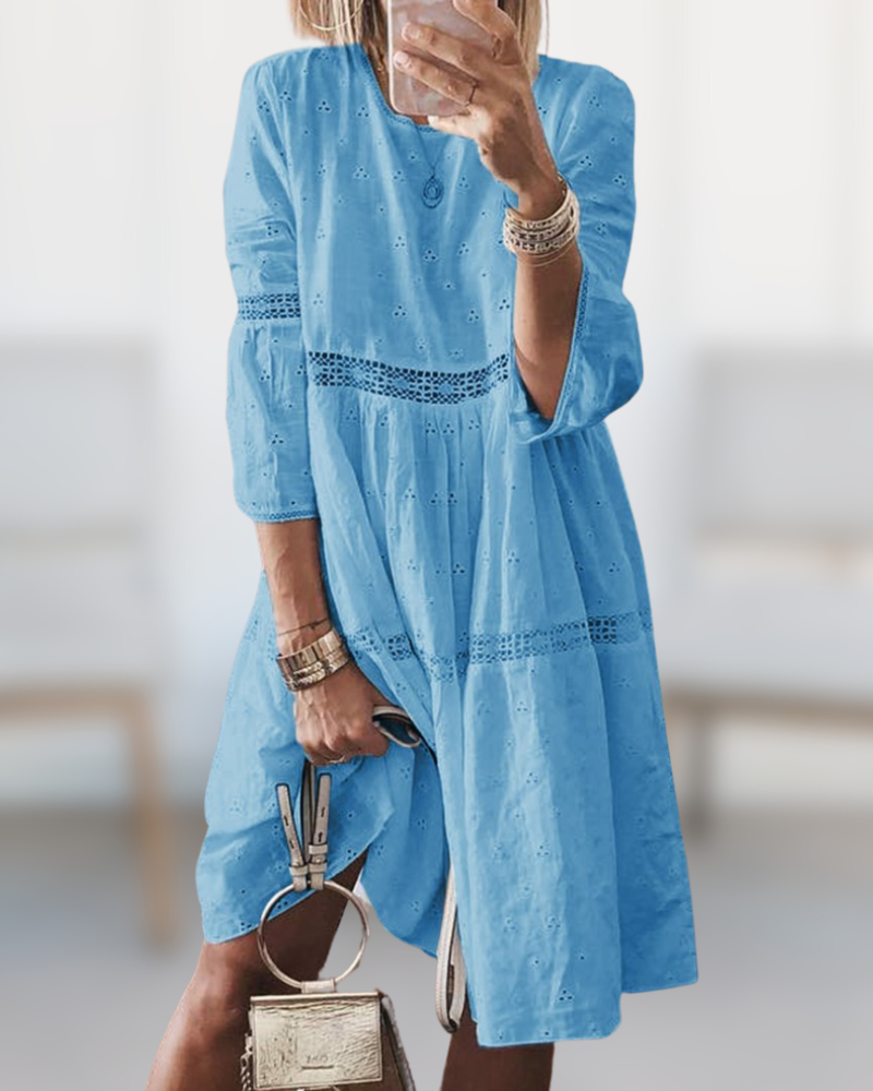 Featuring intricate cutout detailing and a flowing silhouette, this dress is ideal for those who seek both comfort and elegance.